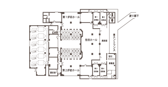 火葬場と式場が同じ敷地内にあるので、通夜・告別式から荼毘まで